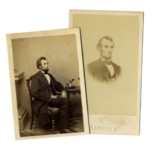 LINCOLN Abraham, 2 ritratti fotografici all'ALBUMina. XIX secolo.