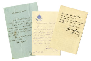 RACCOLTA di 120 lettere, biglietti e CARTOLINE AUTOGRAFE o con firme autografe di politici, pittori, poeti, esploratori, bibliotecari, archivisti ecc. Datate XIX secolo - Inizio XX secolo.