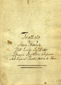 BARTALINI Biagio, Trattato / di / storia naturale / [...] / Biagio Bartalini Professore / Nell'Imperial Facoltà Medica di Siena. Non datato, ma fine XVIII - inizio XIX secolo.