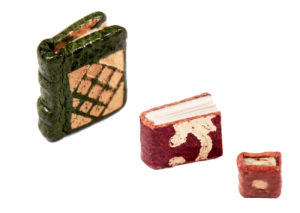 1 volume minuscolo (mm 2x2) con legatura in piena pelle, e piccolo fregio dorato ai piatti ; 1 volumetto religioso (mm 6x5) di circa 4 carte, con legatura in piena pelle verde, decorazioni dorate ai piatti e sguardie in carta marmorizzata.