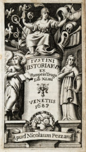 SI AGGIUNGE : Iustinus Marcus Iunianus, Historiarum ex Pompeio Trogo lib XLIV. Venetiis : apud Nicolaum Pezzana, 1683. In-12° (mm 120x65).