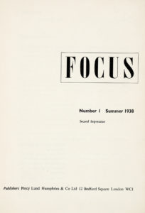 FOCUS. Number 1 (Summer 1938, second impression) (-Number 3, Spring 1939). London : Percy Lund Humphries & Co, 1938-39. 3 fascicoli in-8° (mm 223x150).