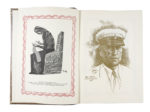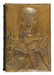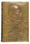 Monumentale legatura in pelle, con titoli e fregi in oro al dorso a 5 nervi e piatti sbalzati raffiguranti, quello anteriore, Mussolini e quello posteriore un uomo che tiene con le braccia alzate un serpente, entrambi realizzati da Antonio Cocchioni. Sguardie in seta. Entro cofanetto in plexiglass. Esemplare gran lusso ad personam n. 367, su una tiratura complessiva di 499 copie della serie oro firmate dell'editore.