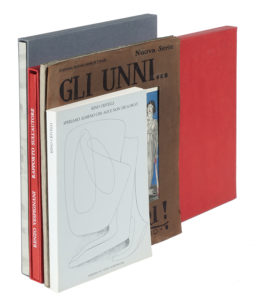 Legatura rigida in cartonato rosso con titoli bianchi impressi al piatto anteriore e al dorso. Il tutto contenuto entro custodia rigida in cartonato rosso con fascetta originale. Ottima copia.
