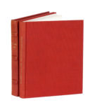 Legatura in piena pelle rossa con decorazioni impresse a freddo ai piatti e titoli in oro al dorso a 3 nervi per il primo volume, in tela rossa con titoli in oro impressi al dorso per il secondo.