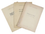 SI AGGIUNGE : Tullier Antonino, Poesie. Disegni di Aligi Sassu. Pagine [12] + 6 riproduzioni in bianco e nero e a piena pagina fuori testo. Copia a fogli sciolti. Carte lievemente brunite con tracce di foxing. Brossura editoriale con titoli in nero al piatto anteriore. Macchie ai piatti. Esemplare n. 24/110. (3)