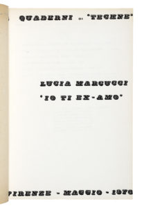 MARCUCCI Lucia, Io ti ex-amo [Quaderni di Techne]. Firenze : Techne, 1970. Ciclostile spillato in-4° (mm 310x215).