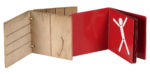 Carte [10] in cartoncino rosso, con illustrazioni che mostrano la figura stilizzata di un omino, stampato in bianco e ruotato in varie posizioni.