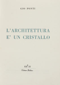 PONTI Gio, L'architettura è un cristallo. Milano : ED*IT Editrice Italiana, 1945. In-8° (mm 150x108).
