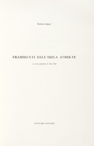 SANESI Roberto, Frammenti dell'Isola Athike. Con una prefazione di Enzo Paci. Milano : A. Schwarz, 1958. In-folio (mm 520x350).