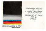 «C'é rumore e c'é silenzio / ci sono mari e ci sono montagne / ci sono puttane e ci sono vergini / ci sono deserti e ci sono prati / ci sono poveri e ci sono ricchi /c'è mortadella e c'é caviale / c'é sangue e c'é amore / c'é tempesta e c'é arcobaleno / ci sono nemici e ci sono amici / c'é pepe e c'é sale / c'é op e c'é pop / ci sono uomini e ci sono donne / ma ogni giorno il sole tramonta...». Edizione originale. Giorgio Maffei, I libri di Ettore Sottsass, pagg. 78-79.