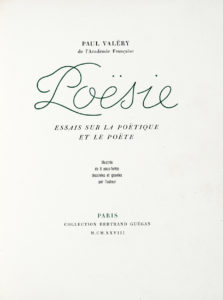 VALERY Paul, Poësie. Essais sur la poëtique et la poëte. Paris : Bertrand Guégan, 1928. In-4° piccolo (mm 260x196).