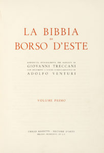 VENTURI Adolfo, La Bibbia di Borso d'Este. Volume primo (-secondo). Milano : Bestetti, 1937. 2 volumi in-folio (mm 410x295).
