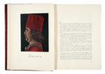 Bella legatura editoriale in piena pelle rossa, con impressioni in oro al dorso e stemma in bronzo sbalzato entro cornice dorata al piatto anteriore ; taglio superiore in oro e sguardie in bella seta bordeaux con impressioni dorate.