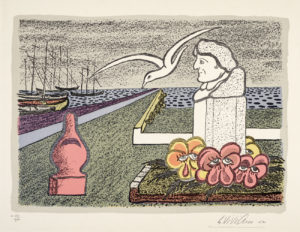 Con, sciolte, tre belle litografie a 8 e 2 colori dell'Artista : La darsena (numerata 88/200, firmata e datata a matita) ; Scirocco (numerata 88/175) e Alba (numerata 88/175 a matita).
