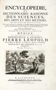 DIDEROT Denis, Alembert Jean Le Rond (d'), Encyclopédie, ou dictionnaire raisonné des sciences, des arts et des métiers, par une société de gens de lettres... À Livourne : dans l’Imprimerie de la Société, 1751-75. 28 volumi in-folio (mm...