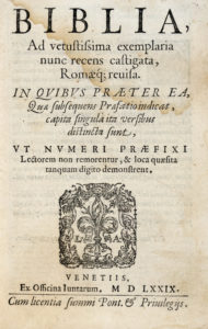 BIBLIA, ad vetustissima exemplaria nunc recens castigata... Venetiis : ex officina Iuntarum, 1579. In-8° (mm 174x117).