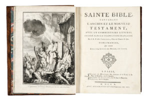 SAINTE BIBLE contenant l'Ancient et le Nouveau Testament... Tome premier (-sixieme). A Paris : chez Huart et Moreau, 1750. 6 volumi in-4° (mm 240x184).