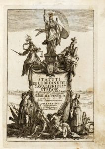 CAVALIERI DI SANTO STEFANO, Statuti dell'ordine de Cavalieri di S.to Stefano... (Al colophon:) In Pisa : nella stamperia di Cristofano Bindi, 1746. In-4° (mm 238x172).
