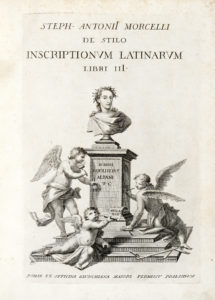 DE STILO INSCRIPTIONUM LATINARUM LIBRI III. Romae : ex officina Giunchiana,s.d. (Al colophon:) [Roma], Persii fratres Aloisius et Laurentius domo Roma officinatores giunchiani opus librarium aggressi kal. iul. 1780 absolvimus pridie kal. febr. 1781....