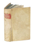Legatura settecentesca in piena pergamena rigida con titolo in oro su tassello al dorso. Sguardie in carta decorata, tagli blu.