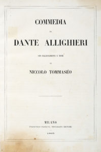 Alighieri DANTE, Commedia [...] con ragionamenti e note di Niccolò Tommaseo. Milano : Francesco Pagnoni, 1865. 3 volumi in folio (mm 335x225).