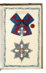 Con 28 belle tavole cromolitografiche numerate I-XXVIII, rilegate in fine e protette da velina, raffiguranti medaglie e insegne di ordini cavallereschi. Esemplare in barbe, parzialmente intonso e ben conservato.