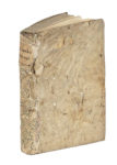 Legatura coeva in piena pergamena floscia con forso rivestito in carta decorata.