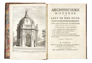 BRISEUX Charles-Etienne, Architecture moderne ou l'art de bien batir pour toutes sortes de personnes tant pour les maisons des particuliers que pour les palais... Tome premier (-second). A Paris : chez Claude Jombert, rue S. Jacques, au coin de la...