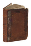 Legatura successiva con applicati i piatti della legatura originale in piena pergamena con impressioni a secco ai piatti.