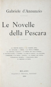 SI AGGIUNGE : Id., Le novelle di Pescara. Milano : Fratelli Treves, 1902. Pagine 466, [2]. Legatura moderna in piena percallina rossa con titolo in oro su tassello al dorso. (2)
