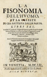 DELLA PORTA Giovan Battista, La fisionomia dell'huomo et la celeste [...] Con la Fisionomia naturale di monsignor Giovanni Ingegneri di Polemone... Venezia : presso li Eredi di Gio. Battista Combi, 1652. In-8° (mm 162x108).