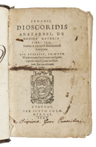 DIOSCORIDES Pedanius, De medica materia libri sex. Lugduni : sub scuto Coloniensi, 1546. In-16° (mm 125x85).