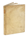 Legatura coeva in piena pergamena rigida con titolo impresso in oro su falso tassello al dorso.