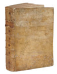 Legatura coeva in piena pergamena rigida con titolo in oro su tassello al dorso.