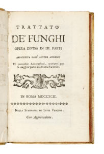 GAVOTTI Girolamo, Trattato de' funghi opera divisa in III parti... In Roma : nella stamperia di Luigi Vescovi, 1792. In-8° (mm 180x110).