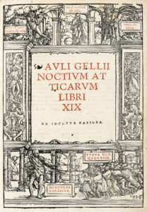 GELLIUS Aulus, Noctium Atticarum libri XIX. Ex inclyta Basilea. Al colophon : (Basileae : apud Andream Cartandrum, 1519 mense septembri). In-folio (mm 295x200).