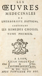GOLLETTI Antoine, Les oevures medecinales de l'herboriste d'Attigna, contenant les remedes choisis. Tome premier (-troisieme). A Lyon : chez Jean Thioly & Antoine Boudet rue Merciere, 1695. 3 volumi in-12° (mm 146x80).