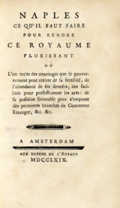 GOUDARD Pierre Ange, Naples ce qu'il faut faire pour rendre ce royaume florissant... A Amsterdam : s.e., 1769. In-8° (mm 180x110).