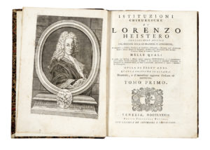 HEISTER Lorenz, Instituzioni chirurgiche [...]. Tomo primo (-secondo). Venezia : presso Francesco Pitteri, 1782. 2 volumi in-8° (mm 240x175).