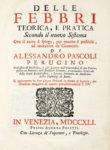 SI AGGIUNGONO : Pascoli Alessandro, Delle febbri teorica, e pratica secondo il nuovo sistema ove il tutto si spiega, per quanto è possibile, ad imitazion de' geometri. In Venezia : presso Andrea Poletti, 1741. 1 volume in-4° (mm 228x163). Tozzi Luca, Medicinae pars prior Theōretike. Neapoli : typis Dominici Antonii Parrini in platea Toletana sub signo Salvatoris, 1703. 1 volume [di 4] in 4° (mm 220x160). (6)