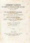 I OPERA: Il volume si vende completo delle sue quattro parti: Osservazioni sui difetti prodotti nei teatri, Aggiunta alle osservazioni sui teatri e sulle decorazioni, Appendice alle osservazioni sui teatri e Appendice seconda alle osservazioni sui teatri e sulle decorazioni. Cicognara 760.