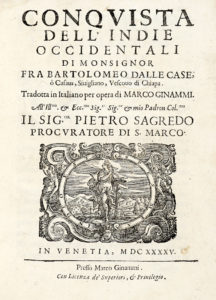 LAS CASAS BARTOLOME (de), Istoria ò brevissima relatione della distruttione dell'Indie Occidentali [...] Con la traduttione in Italiano di Francesco Bersabita. In Venetia : Presso Marco Ginammi, 1643. In-4° (m205x153).
