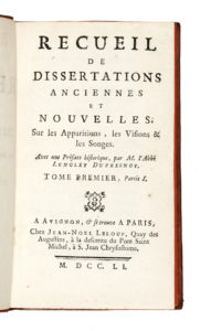 LENGLET Du FRESNOY Nicolas, Traité historique et dogmatique sur les apparitions, les visions & les révélations particuliéres. Tome premier (-second). A Avignon, & se trouve a Paris : chez Jean-Noel Leloup, 1751. 4 volumi in-12° (mm 165x90).