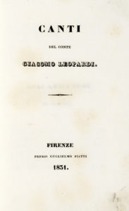 LEOPARDI Giacomo, Canti. Firenze : Presso Guglielmo Piatti, 1831. In-8° (mm 158x100).