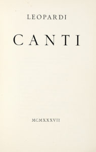 LEOPARDI Giacomo, Canti. Parigi : A. Tallone, 1937. In-8° (mm 252x164).