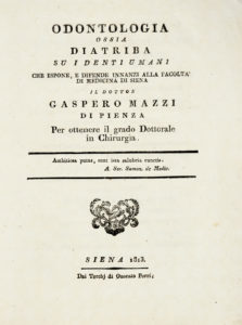 MAZZI Gaspero, Odontologia ossia diatriba sui denti umani. Siena : dai Torchj di Onorato Porri, 1813. In-4° (mm 240x181).