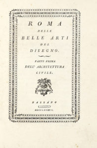 MILIZIA Francesco, Roma delle belle arti del disegno. Parte prima dell'architettura civile. Bassano : s.e., 1787. In-8° (mm194x132).