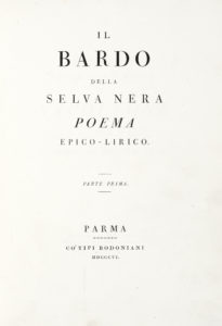 MONTI Vincenzo, Il bardo della selva nera poema epico-lirico. Parma : co' tipi bodoniani, 1806. In-4° (mm 288x205).