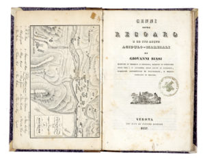 SI AGGIUNGE : Biasi Giovanni, Cenni sopra Recoaro e le sue acque acidulo-marziali... Verona : coi tipi di Pietro Bisesti, 1837. In-8° (mm 206x125). Pagine 108, [12] con una tavola calcografica in antiporta. Fioriture.